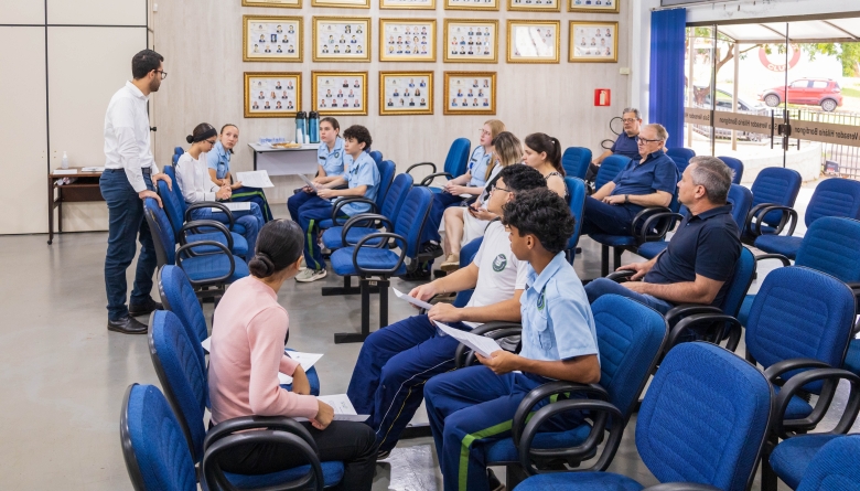 O encontro contou com a participação das professoras Angela Hoyer e Alessandra Piva, coordenadoras do Programa PJ 2025, do presidente da Câmara, vereador Marcos Berta, além dos vereadores Eduardo Schulz e Sebastião Antonio, membros das comissões permanentes de Legislação e Finanças.