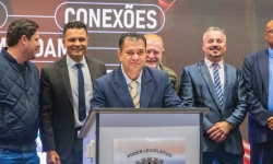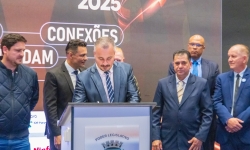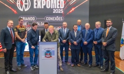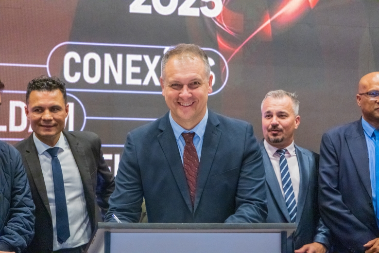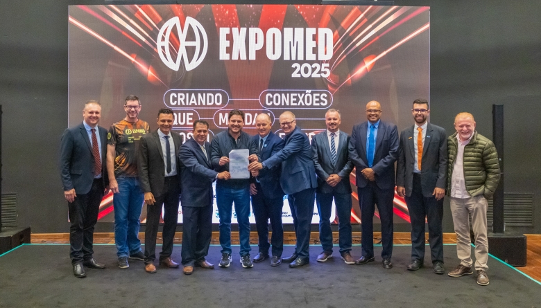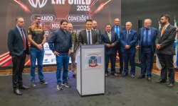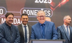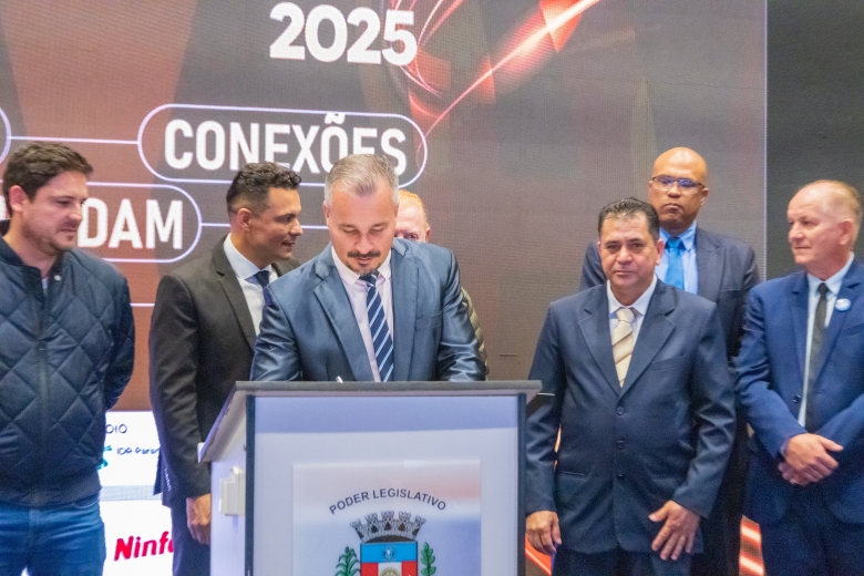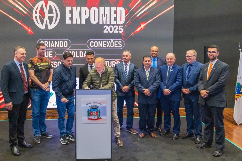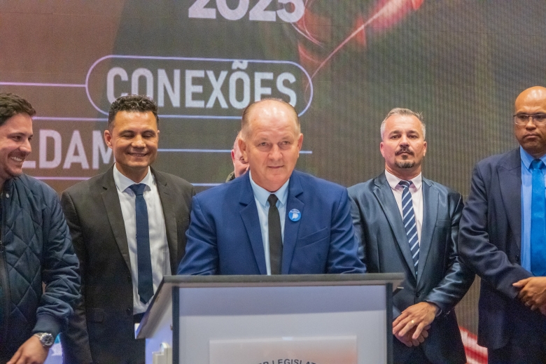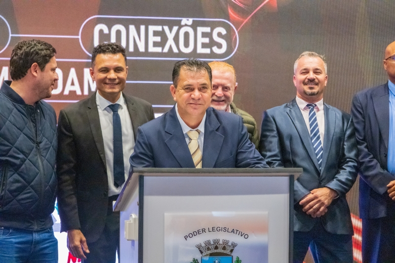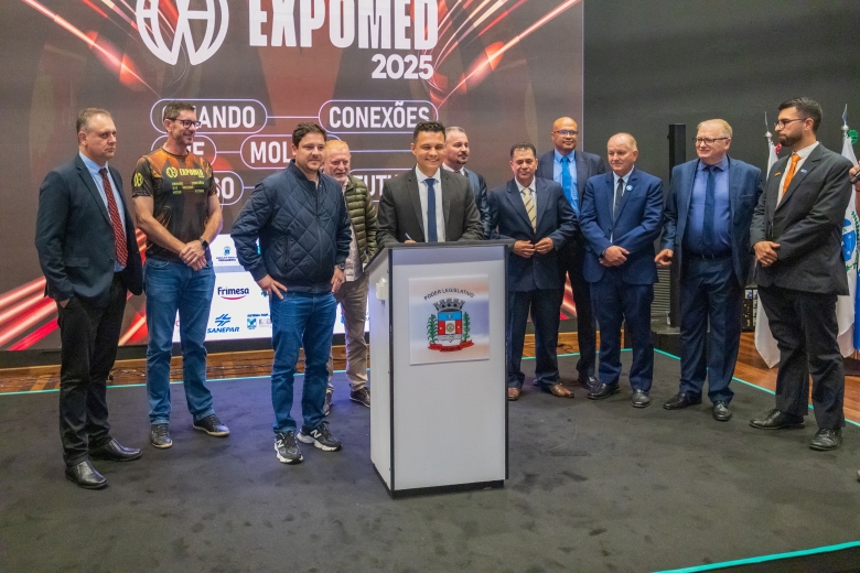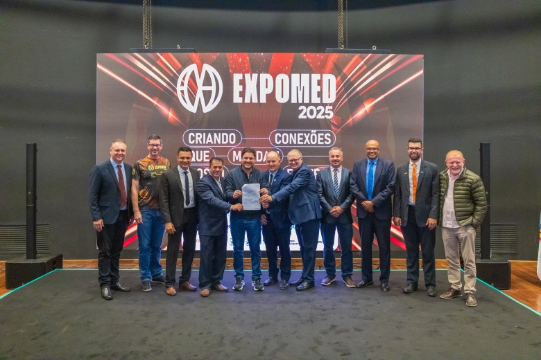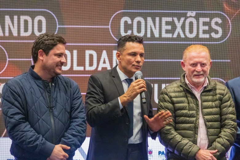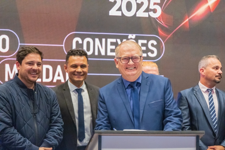 O ato foi realizado no palco Summit da feira e contou com a presença do prefeito França, do vice-prefeito Evandro Mees, do deputado estadual Matheus Vermelho, que destinou a emenda para o município, do deputado federal Vermelho, além de secretários, autoridades empresariais e visitantes.