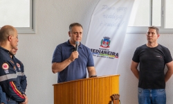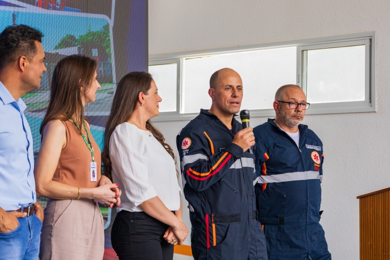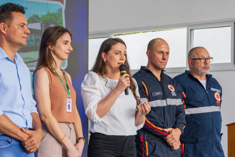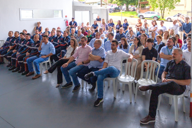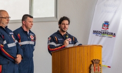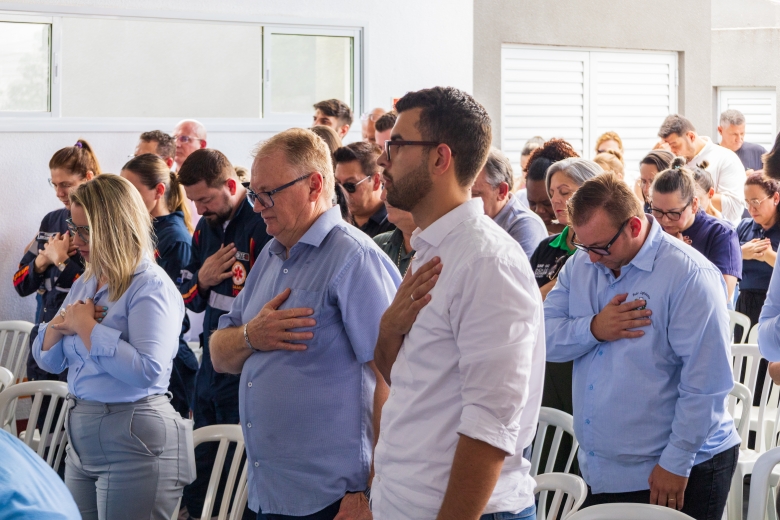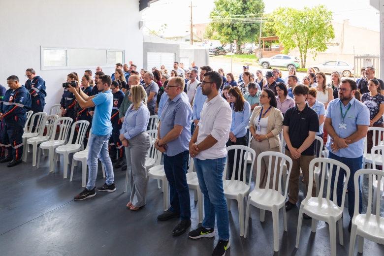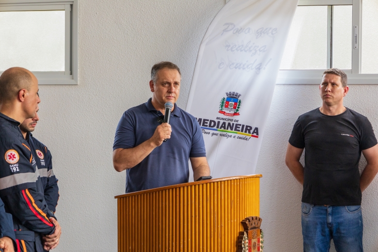 Os vereadores Adriano Both, Eduardo Schulz, Joselito Muniz, Juarez Demarchi, Sebastião Antonio e o presidente da Câmara, Marcos Berta, participaram da solenidade de reinauguração da Base do SAMU de Medianeira, que passou por reforma, ampliação e modernização com investimento de mais de R$731 mil em recursos próprios do município. O ato marcou a entrega de uma estrutura definitiva e adequada para o serviço, que já realizou mais de 4 mil atendimentos neste ano. A cerimônia contou com autoridades regionais e profissionais da saúde, e teve um momento de oração conduzido pelo vereador Adriano Both, ministro de igreja, pedindo bênçãos ao trabalho das equipes do SAMU.
