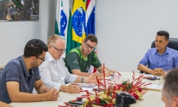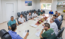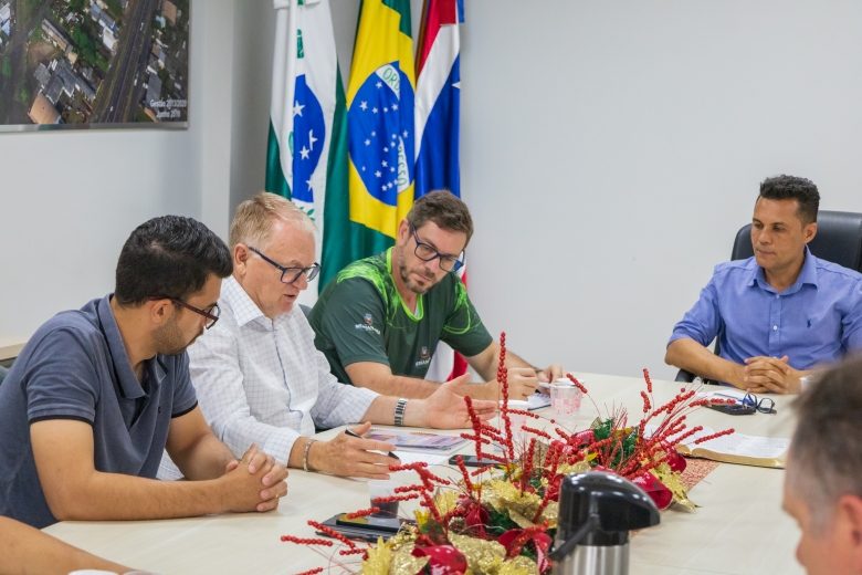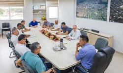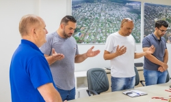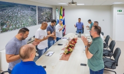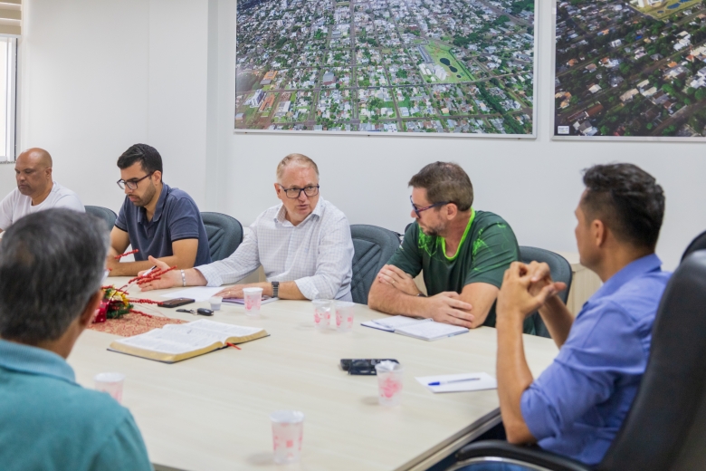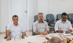 Nesta manhã de quinta-feira (13), vereadores se reuniram com o prefeito França, o vice-prefeito Evandro Mees e o secretário de Assistência Social, Antonio Carlos Pereira, na sala de reuniões do Paço Municipal. O encontro teve como objetivo alinhar demandas de gestão e orçamento do Legislativo, com destaque para a necessidade de avançar no planejamento da sede própria da Câmara, considerada uma prioridade para garantir melhores condições de trabalho e atendimento à população.