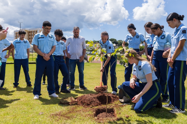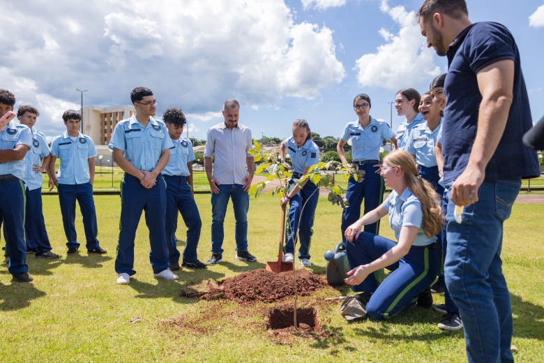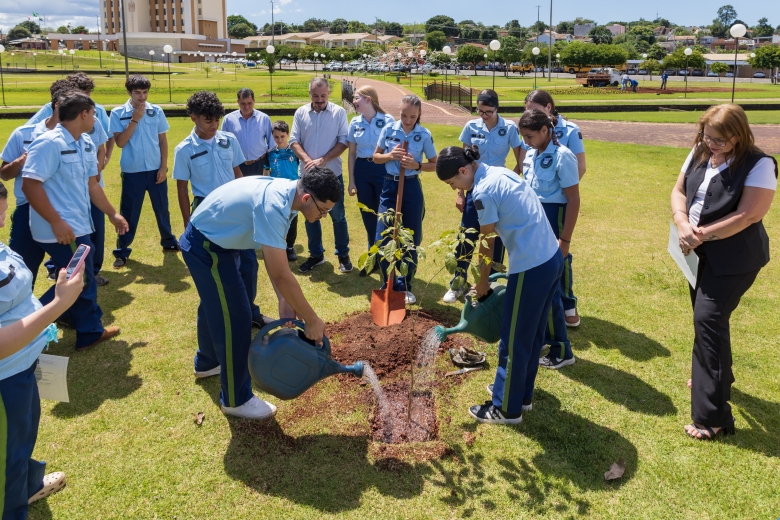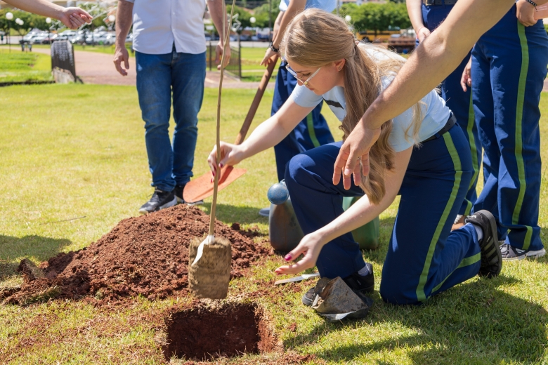 O Parlamento Jovem encerrou suas atividades na quarta-feira (26) com uma ação ambiental realizada no Parque 25 de Julho, anexo ao Paço Municipal. Os vereadores mirins e vereadores titulares participaram do plantio de uma muda de árvore, simbolizando o compromisso do projeto com a sustentabilidade e com a construção de uma cidade mais consciente.