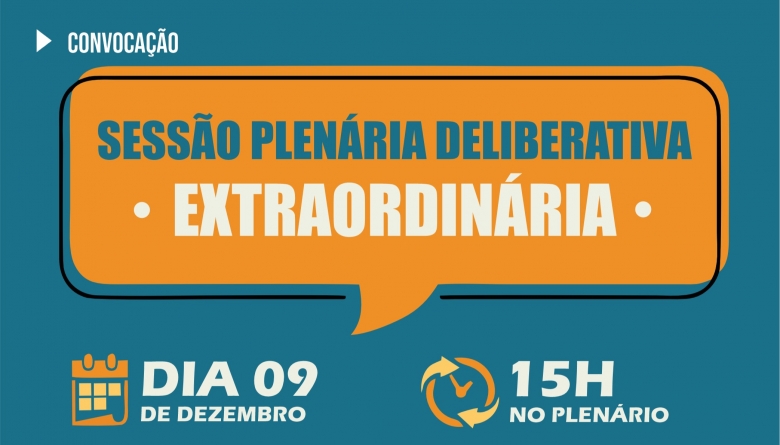A Câmara convoca Sessão Extraordinária para o dia 9 de dezembro, às 15h, no plenário.