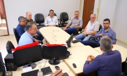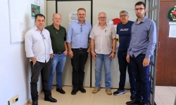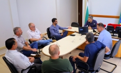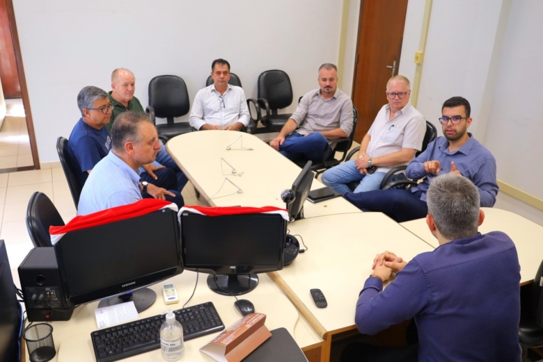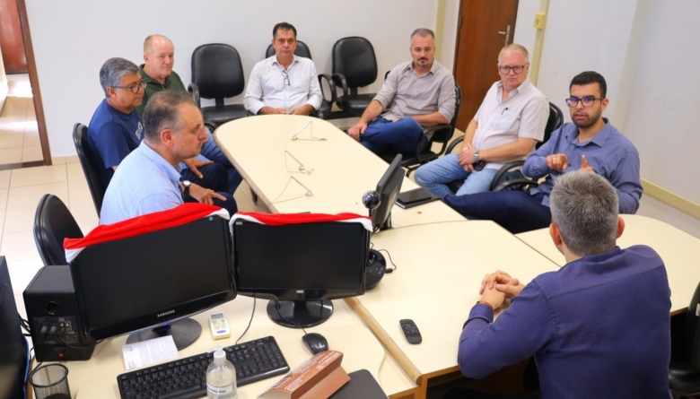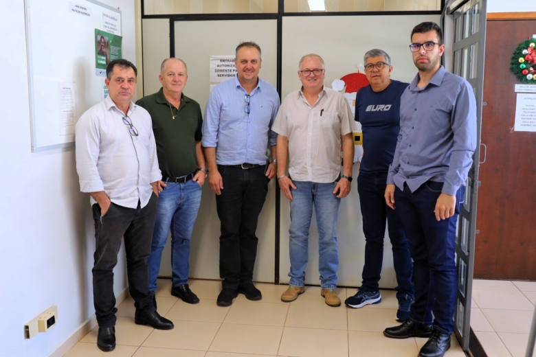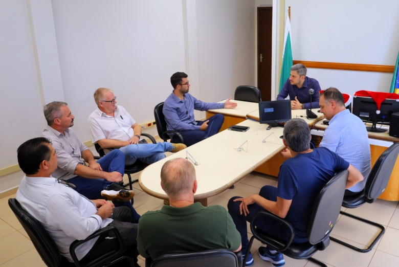 Os vereadores Adriano Both, Douglas de Almeida, Eduardo Schulz, Juarez Demarchi, Nelson de Oliveira, Sebastião Antonio e o presidente da Câmara, Marcos Berta, participaram nesta quinta-feira (11) de uma reunião com o Dr. Leone Nivaldo Gonçalves, da 1ª Promotoria de Justiça da Comarca de Medianeira.