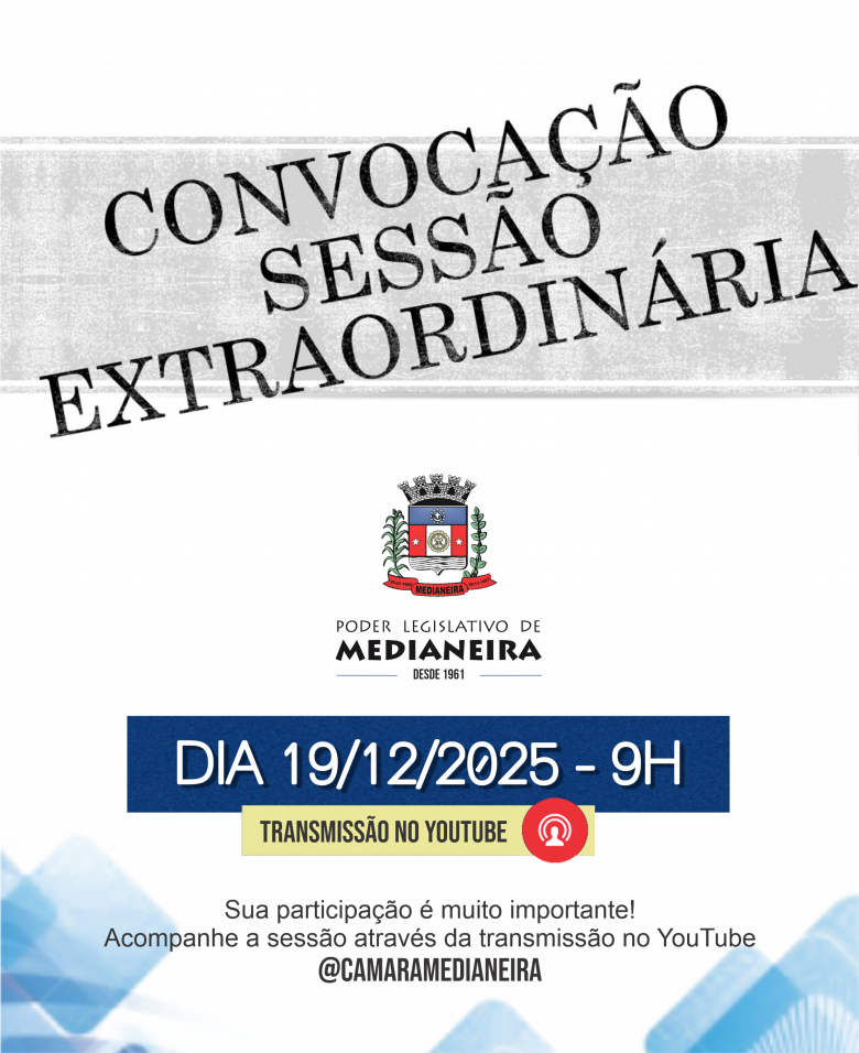 A Câmara realizará, na próxima sexta-feira (19), às 9h, uma sessão extraordinária e terá como pauta a discussão e votação de projetos de relevância para o município. Entre eles, a Redação Final ao Projeto de Lei nº 092/2025, que estabelece as diretrizes para a elaboração do orçamento geral de 2026.