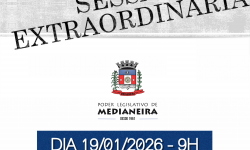 A Câmara realizará sessão extraordinária no dia 19 de janeiro de 2026, às 9 horas, no Plenário da Câmara, conforme o Edital de Convocação nº 1/2026. Na ordem do dia, em primeiro turno de discussão e votação, constam quatro projetos de lei que tratam da reposição inflacionária e recomposição salarial. Dois deles são de autoria do Executivo Municipal e abordam a reposição das perdas inflacionárias aos subsídios de agentes públicos e aos vencimentos dos servidores municipais.