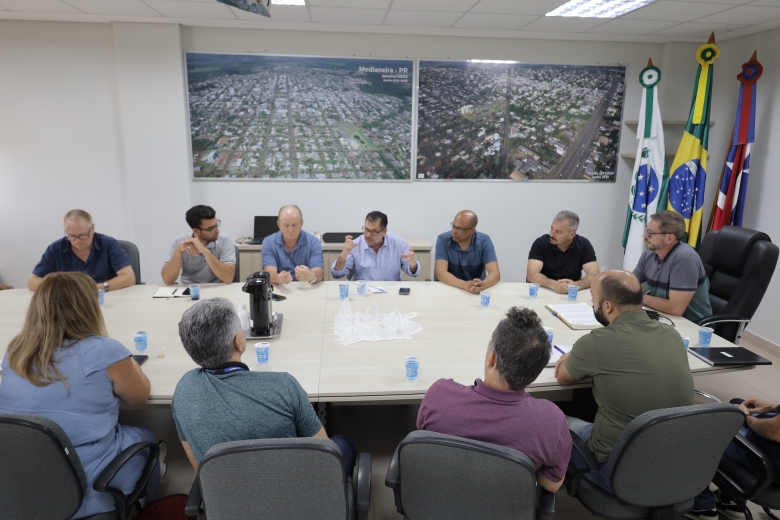 A convite da Comissão de Obras da Câmara, foi realizada na terça-feira (20) uma reunião no Paço Municipal com representantes do Executivo e da Sanepar. Participaram do encontro os vereadores Eduardo Schulz, Joselito Muniz e Juarez Demarchi, o presidente da Comissão de Obras, Nelson de Oliveira, Sebastião Antonio, além do presidente da Câmara, Marcos Berta. Também estiveram presentes o prefeito em exercício, Evandro Mees, o secretário municipal de Obras, Isaías França Benjamin, bem como técnicos e fiscais da Sanepar.