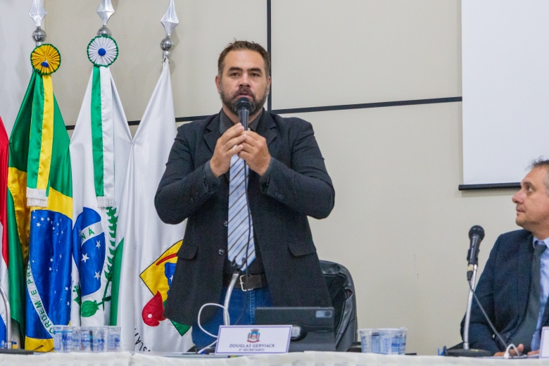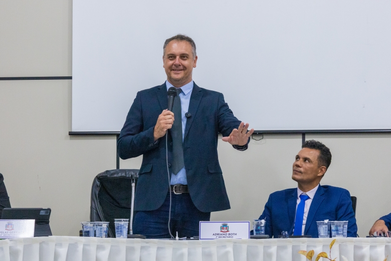 A Câmara realizou, na quarta-feira (18), a sessão solene de abertura do ano legislativo de 2026, com a presença do prefeito França, do vice-prefeito Evandro Mees, do presidente da Casa, Marcos Berta e dos vereadores Adriano Both, Douglas de Almeida, Douglas Gerviack, Eduardo Schulz, Joselito Muniz, Juarez Demarchi, Nelson de Oliveira e Sebastião Antonio.