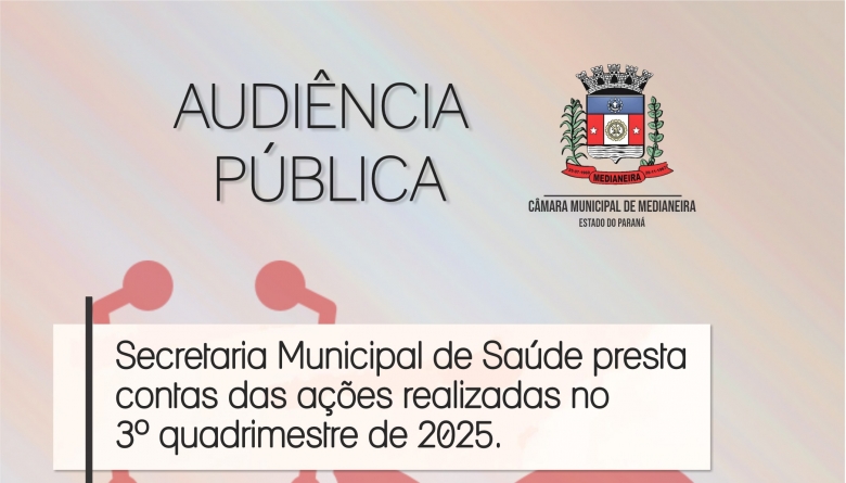 A Câmara convida a população para a Audiência Pública de Prestação de Contas da Secretaria Municipal de Saúde, referente ao 3º quadrimestre de 2025.