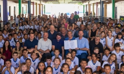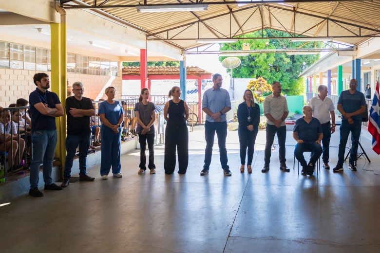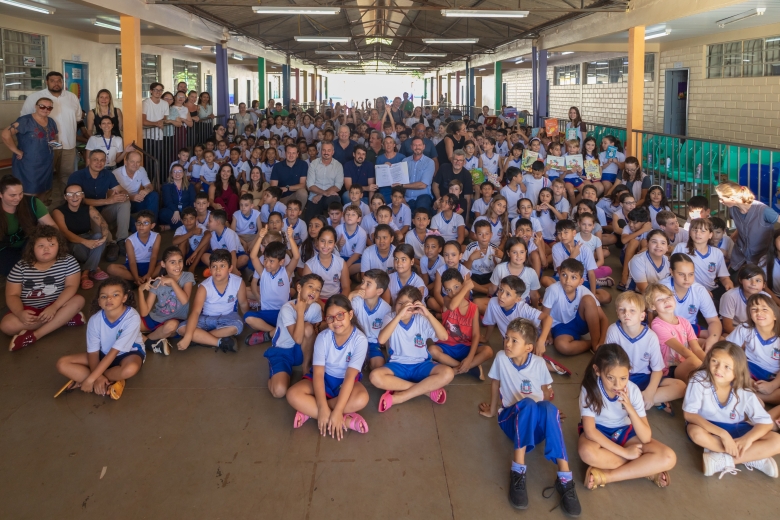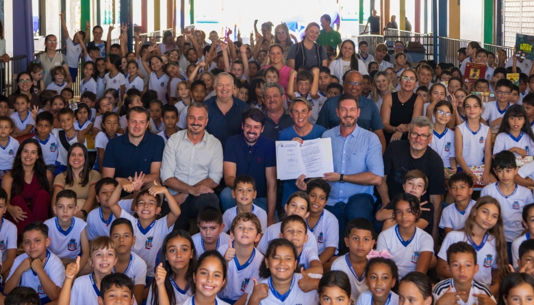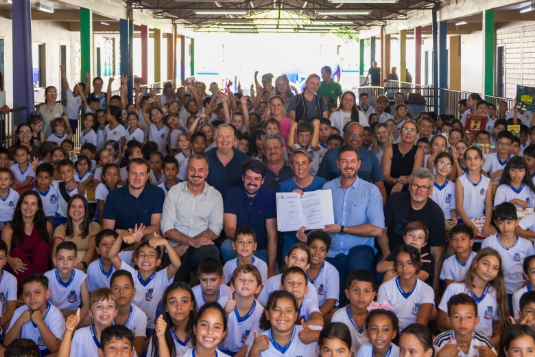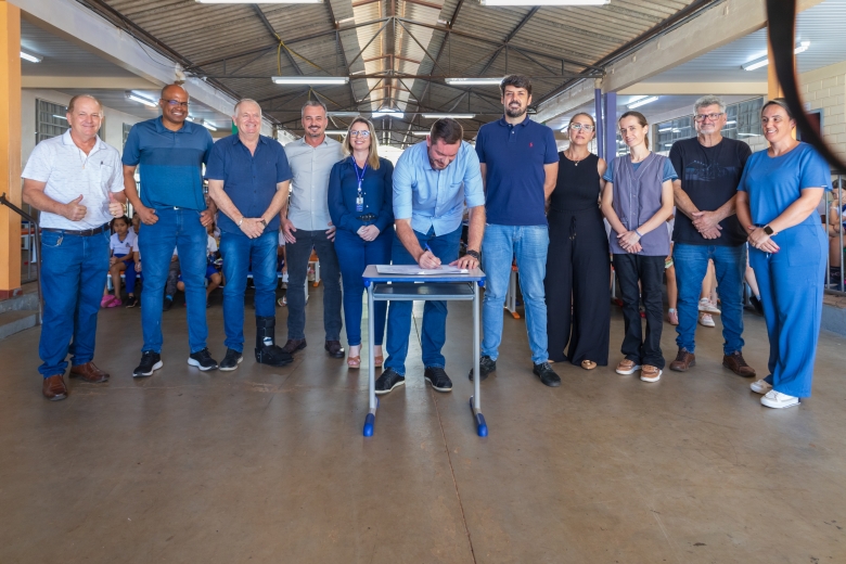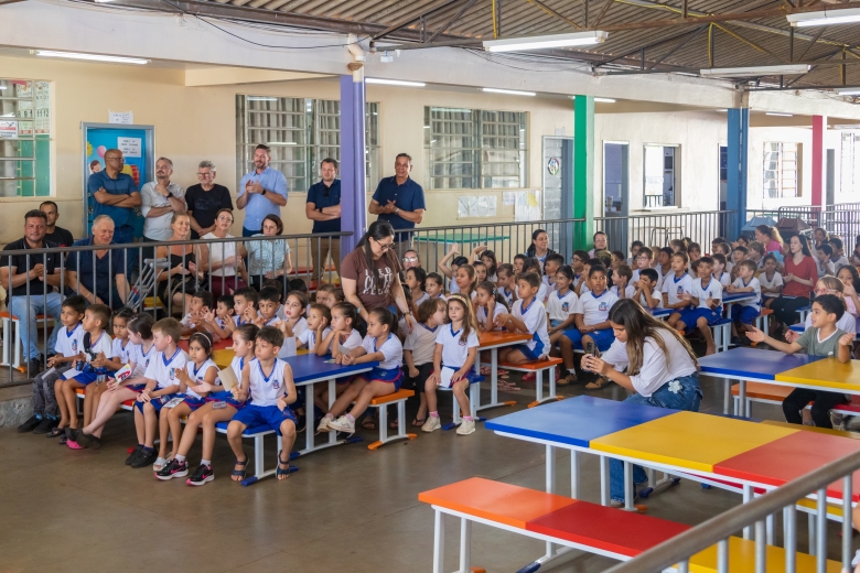 O ato contou com a presença do presidente da Câmara, Marcos Berta, e dos vereadores Joselito Muniz, Juarez Demarchi e Sebastião Antonio, além do vice-prefeito Evandro Mees, da secretária de Educação e Cultura Rosiane Tonelli, da diretora da escola Daiane Tombini, do vice-presidente da APMF Izário Brambati e de representantes da comunidade escolar.