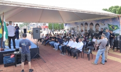 A Câmara Municipal de Medianeira esteve representada na solenidade de lançamento da Operação Diakopí, realizada na última sexta-feira (20), na Praça Ângelo Darolt. Participaram do ato o 1º vice-presidente Eduardo Schulz e os vereadores Adriano Both, Douglas Gerviack, Juarez Demarchi, Nelson de Oliveira e Sebastião Antonio, reforçando o compromisso do Legislativo com as ações voltadas à segurança pública no município e na região.