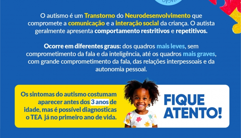O Autismo é uma doença de ordem mental conhecida com o”Transtornos de Espectro Autista” – TEA. Dentre os sintomas, estão as fobias, agressividade, dificuldades de aprendizagem, dificuldades de relacionamento, por exemplo.