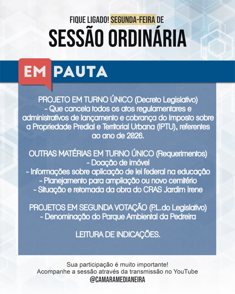 Confira a pauta (link) no site ou em nossos Storys