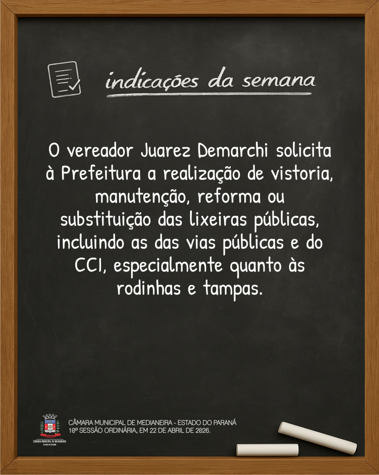 Mais detalhes sobre a sessão no site www.camaramedianeira.pr.gov.br.