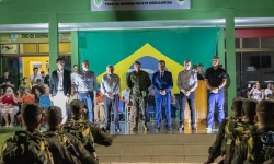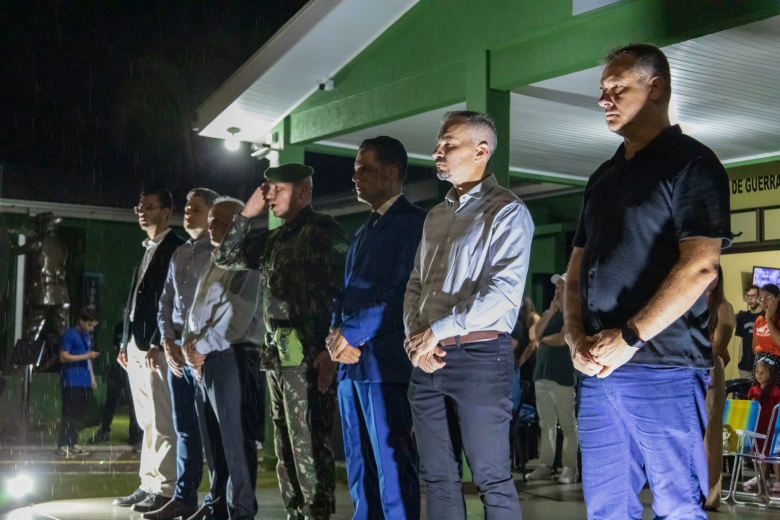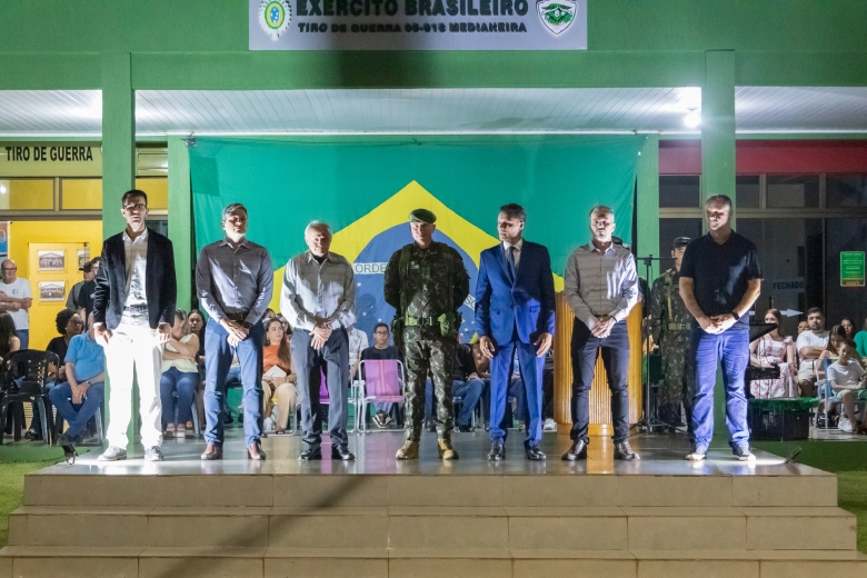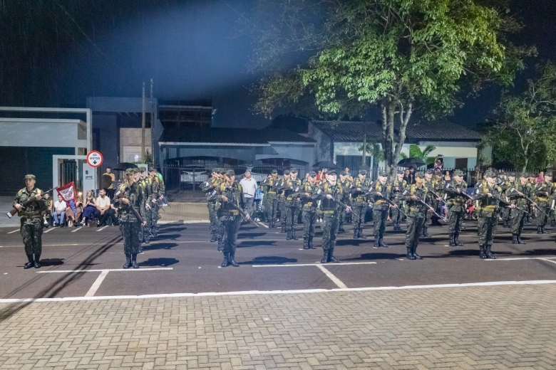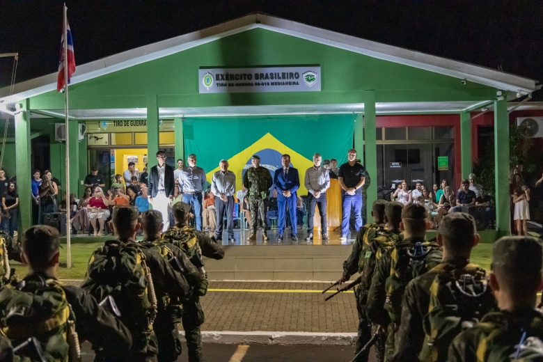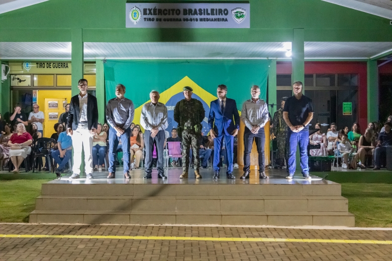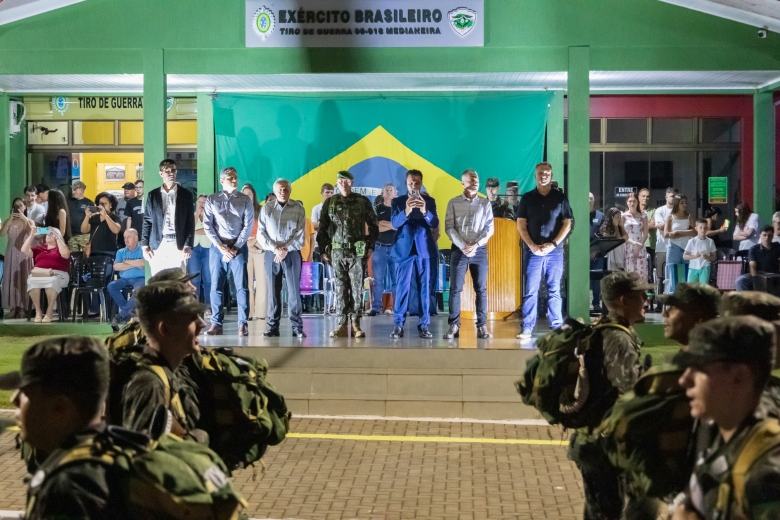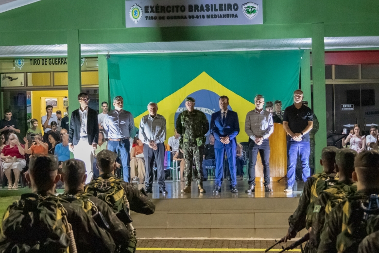 No último sábado (25), representantes do Legislativo participaram da solenidade de formatura em alusão ao Dia do Exército Brasileiro, realizada no Tiro de Guerra 05-018. Estiveram presentes o presidente da Câmara, Marcos Berta, e os vereadores Adriano Both e Eduardo Schulz, junto a autoridades civis, militares, familiares e convidados.